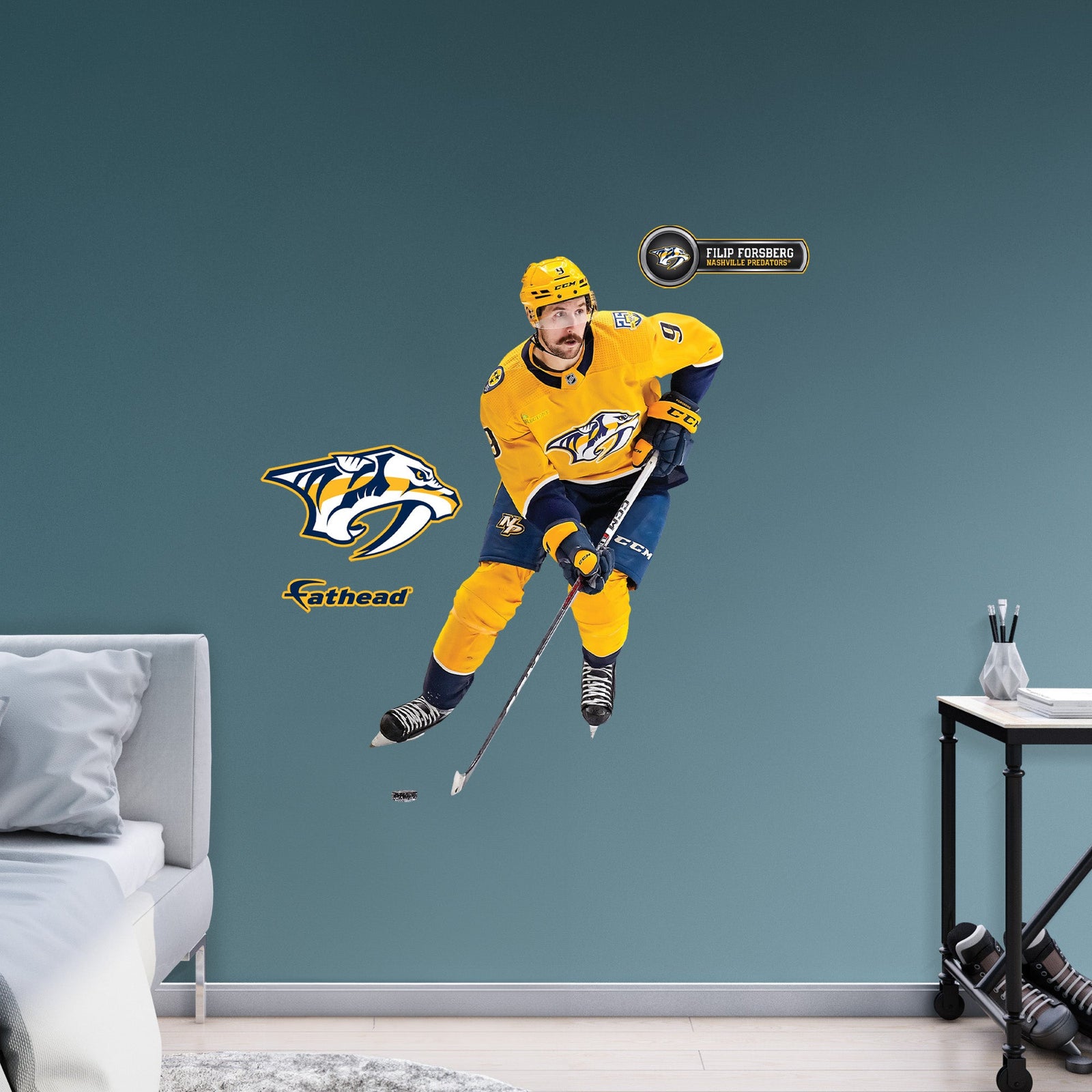 Transform your space into a tribute to the Nashville Predators with the Filip Forsberg RealBig Collection Vinyl Wall Decals. These decals are perfect for fans who want to showcase their team spirit without the hassle of permanent decor. Made from premium vinyl, they offer vibrant, fade-resistant colors that capture the excitement of the game. The precision die-cut edges ensure a seamless look, while the low-tack adhesive allows for easy application and repositioning, leaving your walls damage-free.