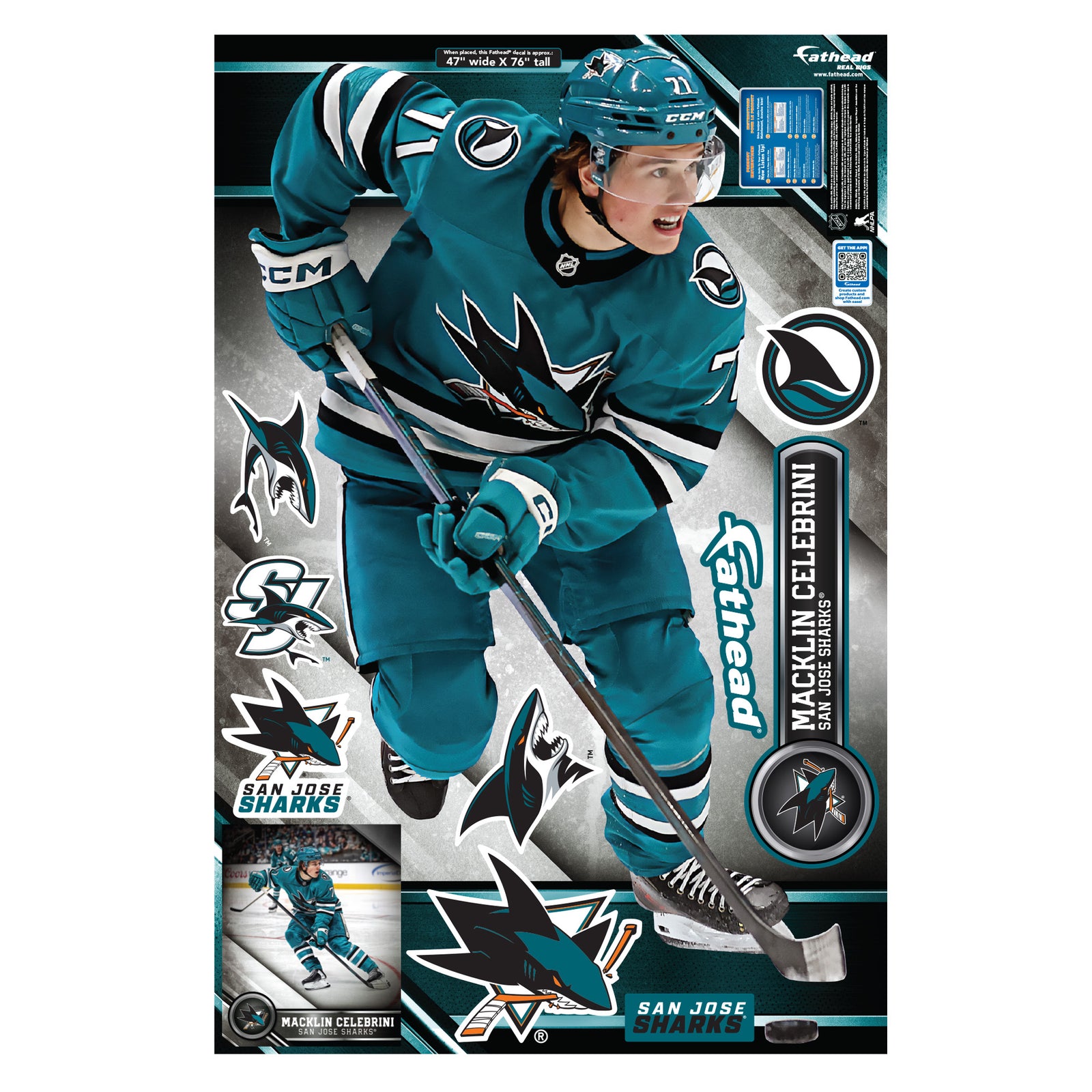 Official NHL San Jose Sharks Reusable Vinyl Wall Decals