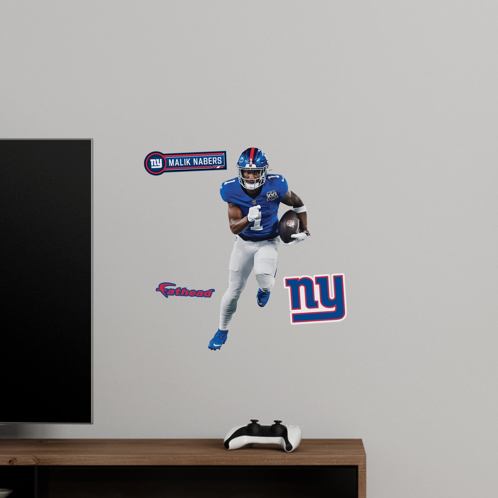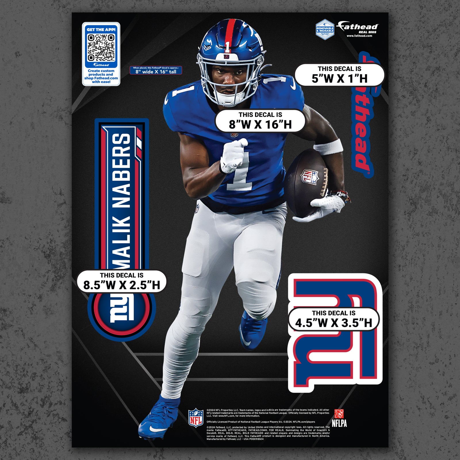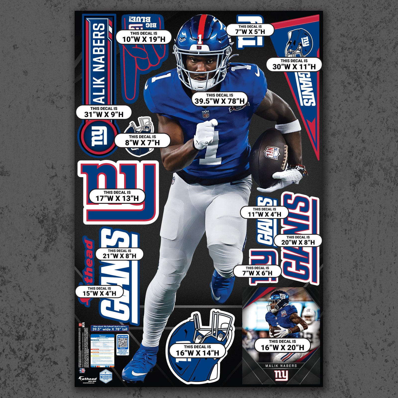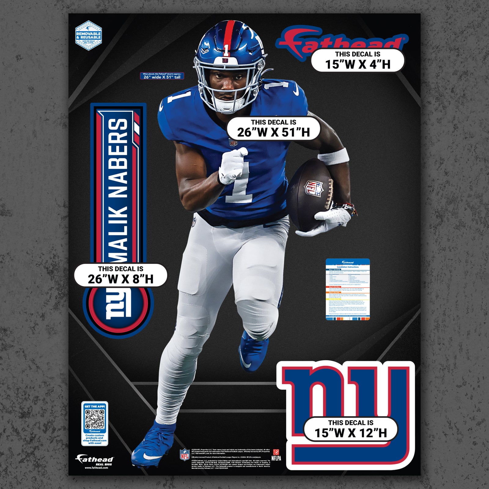 Transform your space with the New York Giants RealBig Malik Nabers Collection wall decals, a must-have for any true NFL fan. These reusable vinyl decals bring the energy and excitement of the game right into your home. Designed for easy installation, they adhere smoothly to most surfaces with a low-tack adhesive that ensures no residue or damage. Featuring precision die-cut edges, these decals offer a seamless fit that enhances any room, creating an immersive fan experience.