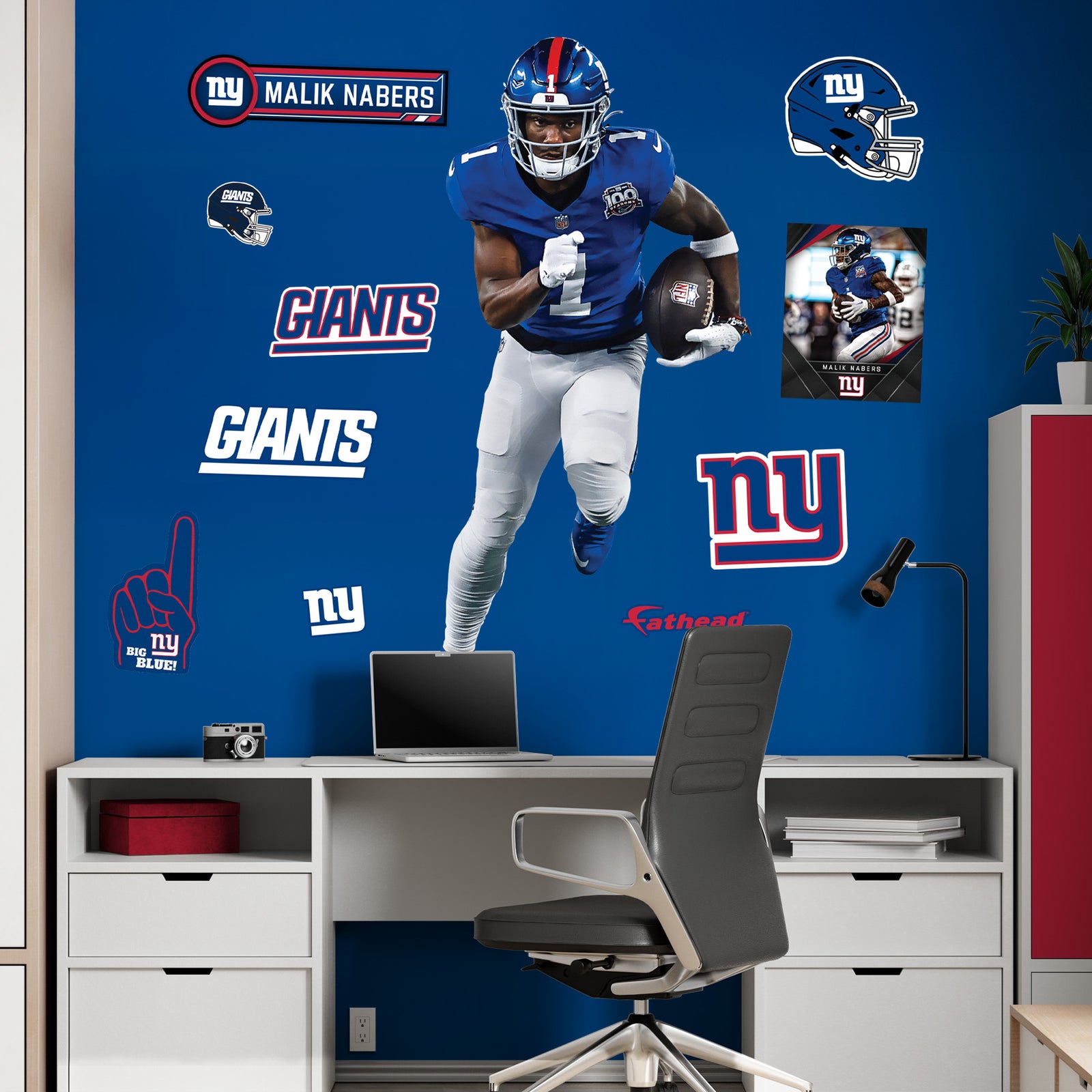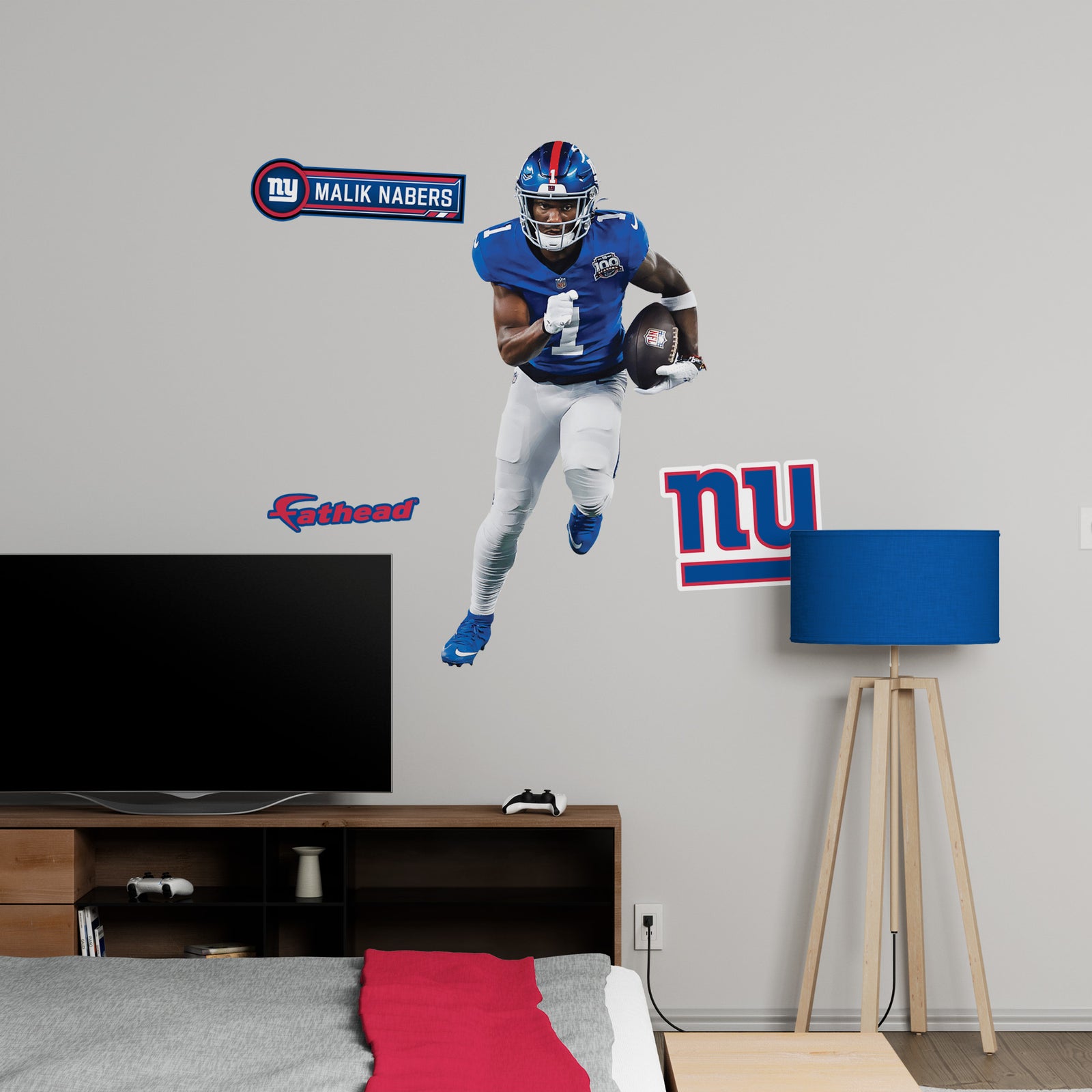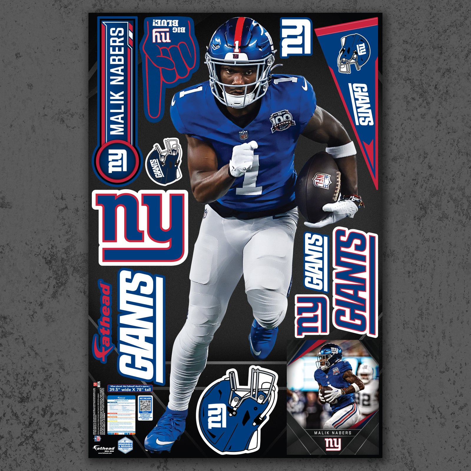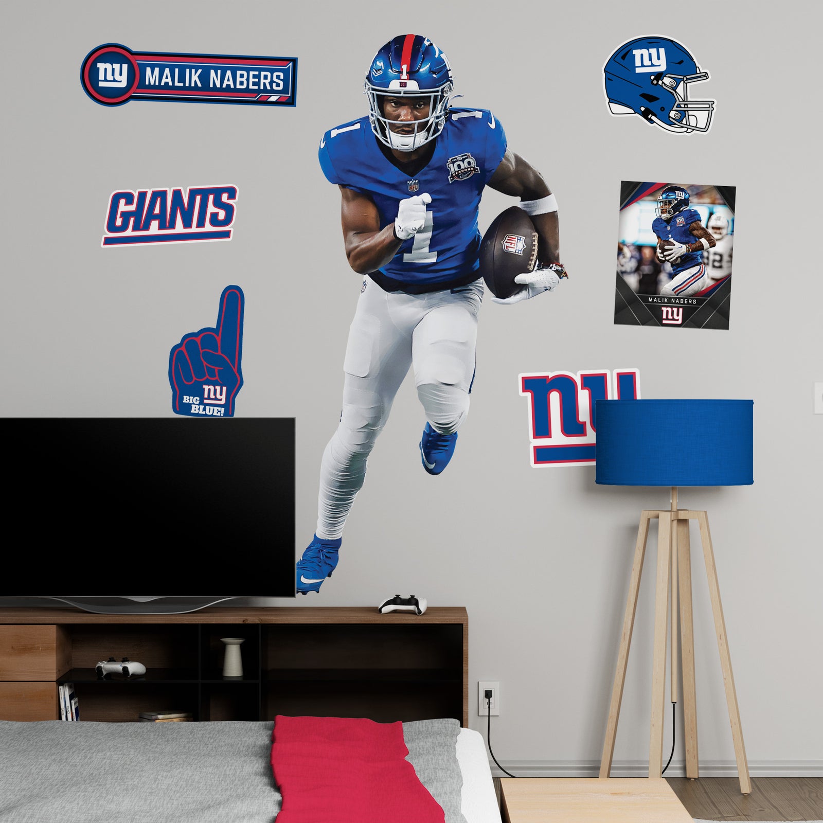 Transform your space with the New York Giants RealBig Malik Nabers Collection wall decals, a must-have for any true NFL fan. These reusable vinyl decals bring the energy and excitement of the game right into your home. Designed for easy installation, they adhere smoothly to most surfaces with a low-tack adhesive that ensures no residue or damage. Featuring precision die-cut edges, these decals offer a seamless fit that enhances any room, creating an immersive fan experience.
