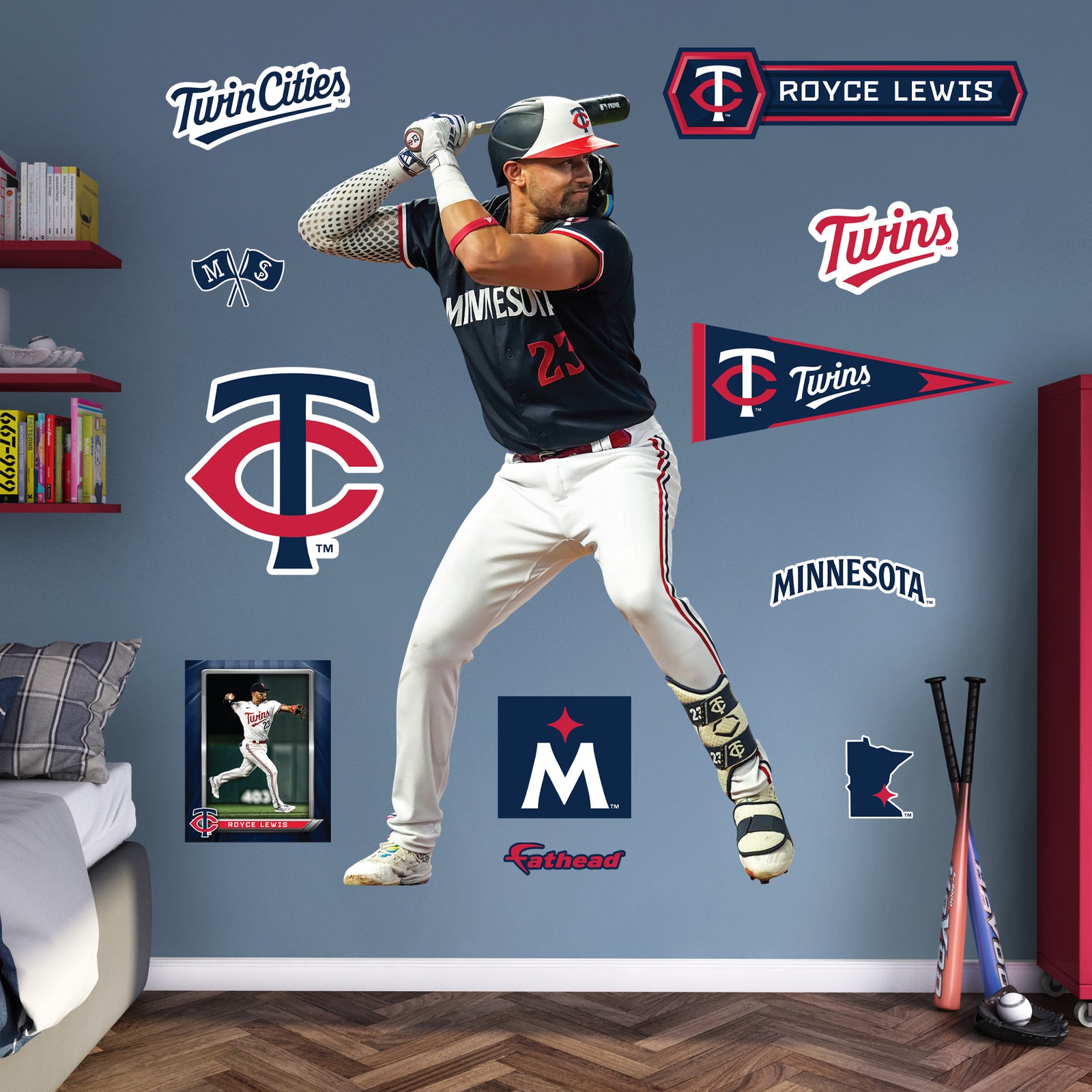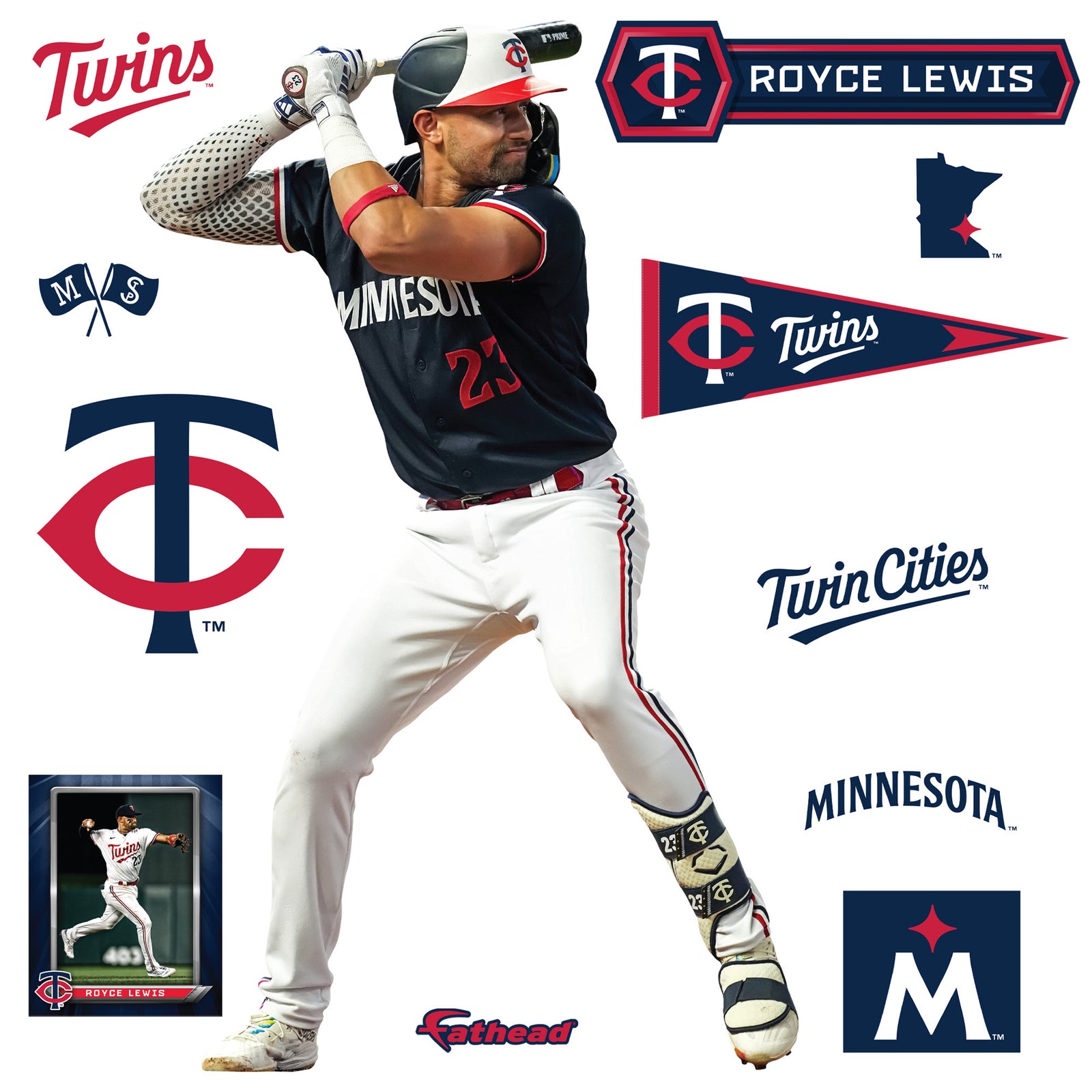 Transform your space with the Royce Lewis RealBig Collection, featuring official MLB Minnesota Twins reusable vinyl wall decals. These vibrant decals bring your love for the game to life, offering a dynamic way to showcase your fandom. Crafted from premium vinyl, they boast a scratch-resistant finish and fade-resistant inks, ensuring your walls remain bold and colorful for years. The precision die-cut edges provide a seamless look, making them a perfect addition to any fan's room.